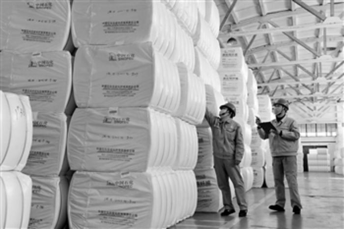 2月2日,中国石化仪征化纤公司储运部成品一区,短纤发货班班长和保管员正在库房核对即将驰援疫区的水刺专用涤纶短纤产品。疫情当前,已有浙江、天津、山东、湖北等多家企业,携“绿色通行证”来仪征化纤紧急提货,指定要水刺无纺布涤纶短纤维,主要用于生产抗疫的医疗防护用品,仪征化纤第一时间组织生产和发货,并协调地方交通部门给予通行。 刘玉福 摄