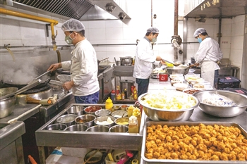 牡丹苑美食城是工会会员卡合作单位。疫情发生后,该单位在方庄地区总工会和当地居委会指导下,组织10多名留守职工,临时改建主食厨房,为附近职工和小区居民提供餐饮服务。 本报记者 王伟伟 摄