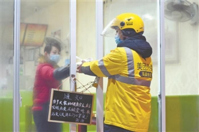 徐发祥和同事们做好自身防护,每天定时对外卖箱进行消毒,保障外卖安全。他们白天黑夜穿行在空旷的街道上,将一份份外卖送达消费者,将温暖传递到千家万户。