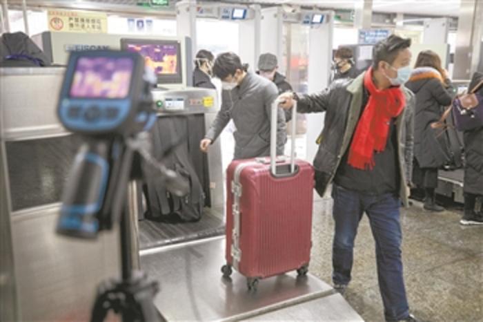 北京地铁在全网使用非配合式热成像体温测试系统进行测温。 本报记者 王伟伟 摄