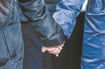 2月6日,北京大学国际医院的付雪莹与丈夫张立朋手拉手告别。当日,北京大学国际医院支援湖北抗疫医疗队出征。很快,张立朋也将前往抗“疫”一线。新华社记者 张玉薇 摄