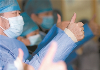 张如胜带领实验室的年轻人进行病毒核酸检测,每天穿着厚重密封防护服,一天下来汗流浃背。为了保证标本检测结果尽快出来,他坚持等所有送样标本结果复核确认后才下班,到家经常接近零点……