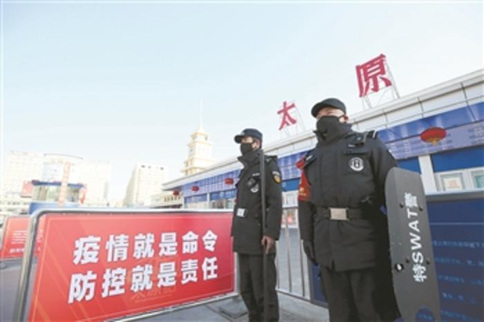 图为太原车站派出所民警正在开展疫情防控工作。王睿 摄