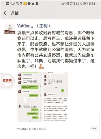 本来,这个春节,她早早订好了农历腊月二十九的返程票,回绵竹老家陪妈妈过年。在新冠肺炎疫情突然暴发,形势日趋严峻的情况下,王利妈妈因为担心女儿几次催促其返程,有朋友提醒她“不要等,应该提前走”。王利犹豫了,她时时关注网络疫情消息和政府相关动态,当了解到封城后的武汉市内所有公共交通即将停运,市民出行将极为不便的情况后,王利当即作出决定:不走了。