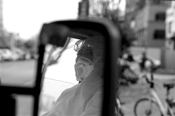 上图:2月12日,陈晓亮在等候转运病人。 陈晓亮是安徽省蚌埠市紧急救援中心的救护车驾驶员。新冠肺炎疫情发生后,陈晓亮从2月1日开始,24小时待命,随时准备转运确诊患者。和确诊患者同在一车,增加了感染风险,但陈晓亮顾不上那么多。“危险的工作总要有人做,希望疫情早点结束,救护车再拉不到一个确诊患者。”
