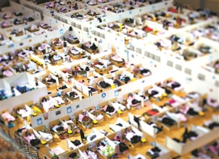 2月17日拍摄的武汉体育中心方舱医院(移轴镜头拍摄)。