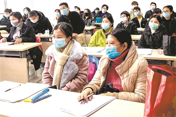 2月17日,广东江门逸豪酒店的员工在海信产业园进行上岗前的基本操作技能培训。产业园在全面做好疫情防控的基础上,采取与逸豪酒店共享员工的方式加快全面复工复产。 周华东 摄/人民图片