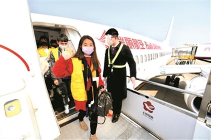 2月19日,云南籍务工人员乘坐复工包机抵达福建泉州晋江国际机场。