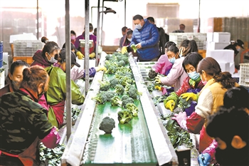 2月18日,漳州蔬博果蔬有限公司工人在加工新鲜蔬菜。