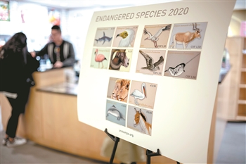 这是2月18日在位于纽约的联合国总部拍摄的濒危物种系列邮票海报。