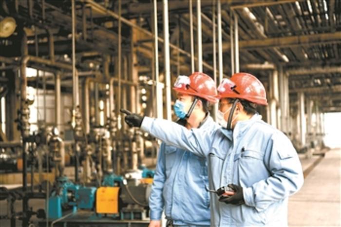 2月20日,在中国石化集团重庆川维化工有限公司,工作人员在生产线上巡检。