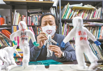 山东省滕州市民间文艺家协会的艺人在家身闲心不闲,积极开展同舟共济战疫情,文艺家在进行文艺创作。民间艺人梁军根据奋战在抗击新冠肺炎一线的逆行者形象,创作了为“武汉加油”和关公形象的面塑,艺术的手法表现了中国人民战胜病魔的决心。