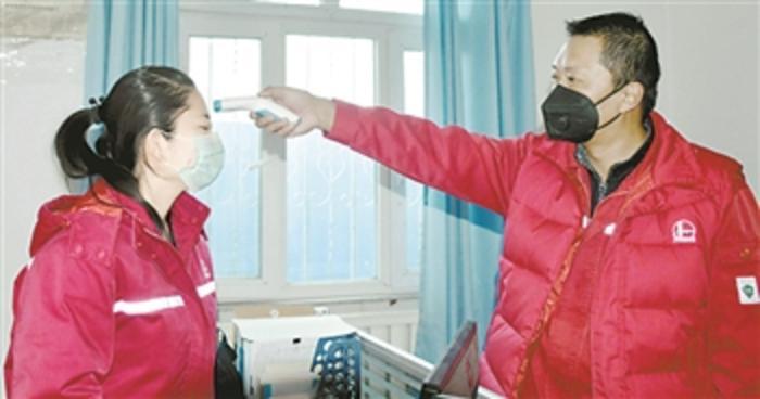 安全监督吴杰每天第一个早早到岗,为进站上班的员工逐个测量体温,协调装置的安全生产。几天下来,胳膊累得抬不起来,吃饭时都打哆嗦,夹起饭菜,送不到嘴里。