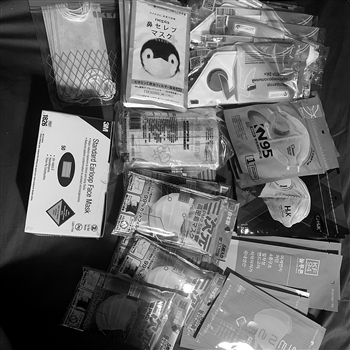 一位网友给李迪采发来自己购买的各式口罩,其中大多数只有防尘效果。受访者供图