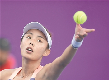 2月23日,中国选手王蔷在比赛中发球。新华社发(尼库摄)