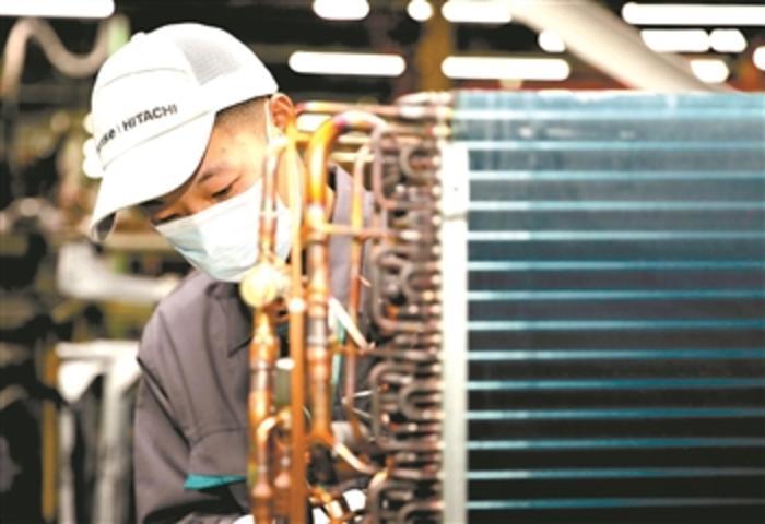 2月24日,“共享员工”李仕杰在青岛海信日立空调系统有限公司空调流水线上进行组件辅助安装工作。为解决人力资源闲置和用工短缺两头问题,青岛西海岸新区发起了“共享员工”项目,搭建起“共享网络线上用工平台”,在全区700多家企业进行项目推广。张进刚 摄
