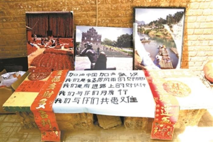 这是2月25日在苏丹喀土穆大学拍摄的中文系学生为声援中国抗击疫情举办的展览活动一角。