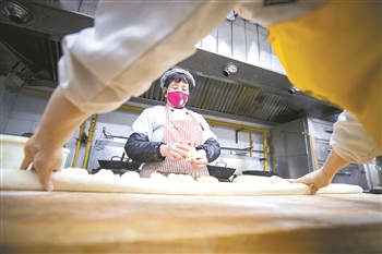 北京一社区的主食厨房正在赶制午餐。本报记者 王伟伟 摄