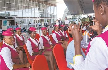 2月25日,在肯尼亚首都内罗毕,蒙内铁路员工在蒙内铁路安全运营1000天表彰会上合影留念。在蒙巴萨-内罗毕标轨铁路(蒙内铁路)安全运营1000天之际,负责铁路运营的非洲之星铁路运营公司总经理李久平25日说,蒙内铁路取得了良好的社会效益和经济效益,助力肯尼亚经济和社会发展。新华社记者 张宇 摄
