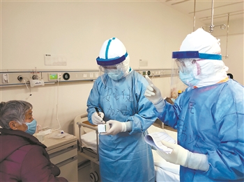 虽然隔着厚重的隔离服,安友仲喜欢跟患者床边交流,不仅解答他们对病情的疑问,科普一些小知识,还询问生活方面的困难,他细心的话语,温暖了患者,也改变了原本沉重压抑的病房气氛。