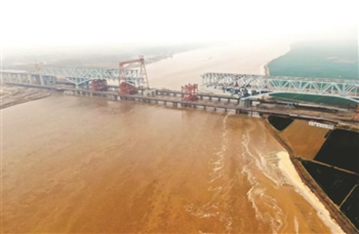近日,国家重点工程——郑(州)济(南)高速铁路郑州黄河特大桥建设工程有序复工。由中铁大桥局承建的郑济高速铁路郑州黄河特大桥主桥及南引桥全长4377米,采用公路、铁路上下层合建的布置形式,设计4线铁路、6车道快速公路。