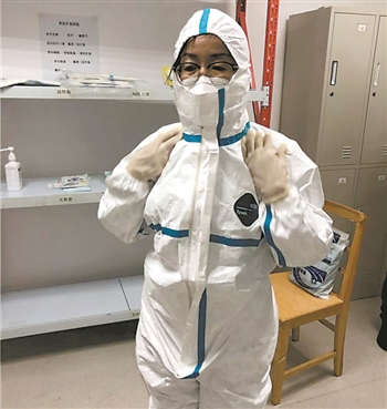 王彩霞穿上防护服坚守在清洁岗位上。图片由受访者提供