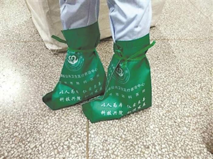 背包有了,王彩霞又找来包装袋做一次性鞋套,一口气做了60多双。