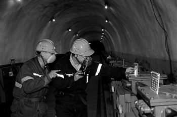 2月24日,山西同煤集团同忻矿,两名职工正在矿井下检查智能生产设备。疫情期间,同忻矿作为一座高度智能化的千万吨矿井,积极发挥该矿用人少、安全保障程度和效率高的优势,保证人员最少化,产量最大化。孙炎宾 摄
