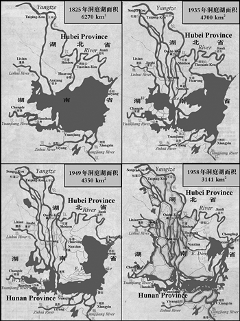 在过去不到200年间,洞庭湖面从“玉盘”变成了反写的“L”形。