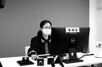 随着法槌声响起,一场特殊的庭审在广州互联网法院“YUE法庭”开庭。法官张艳端坐在电脑屏幕前,身后是一块约3平方米的绿色幕墙。然而,在庭审实况大屏显示的画面中,法官如往常一样坐在法庭审判台上,国徽、审判席一应俱全。两名陪审员也出现在审判席上。
