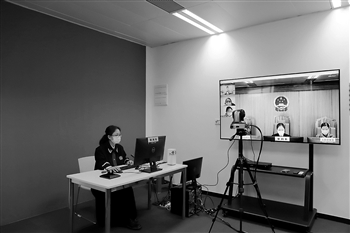 2月28日,广州互联网法院正式发布“YUE法庭”。依托该法庭,法官和人民陪审员均可实现不同场域同台开庭,实现实体法庭向5G虚拟智能法庭的无缝“跨越”。广州互联网法院供图