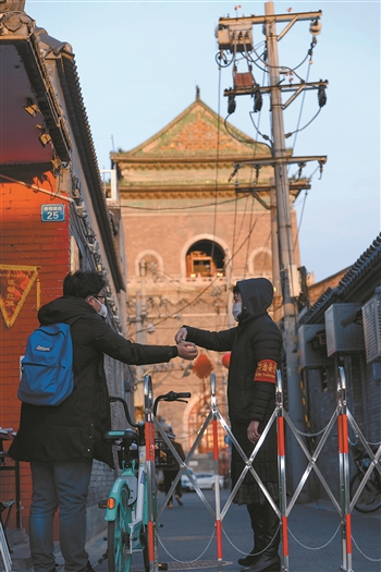 不仅是在前门,在北京大大小小的胡同口,有无数个门岗,数以万计的保安、志愿者们正24小时坚守岗位,守护着疫情防控的“最后一公里”。