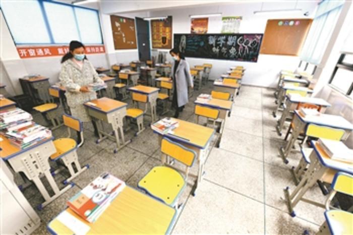 连日来,贵阳市初三、高三年级学校做好新冠肺炎疫情防控措施,安排好分散通道、消毒设施等,并将消毒好的新学期课本提前摆放到学生的课桌上,确保开学时学生不聚集领取新书,有序开学。贵州省高三年级和初三年级学生将于3月16日正式开学。