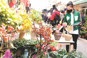 3月15日,顾客在江苏省苏州市皮市街花卉市场内选购花卉。