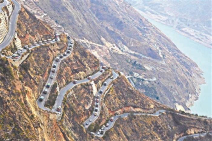 3月15日,行驶在盘山路上的搬迁车队。近日,云南省永善县进行今年以来的最大规模跨县易地扶贫搬迁,来自该县10个乡镇664户2829名贫困群众搬出大山,入住昭阳区靖安安置区和鲁甸县卯家湾安置区。 龙喜学 摄/人民图片