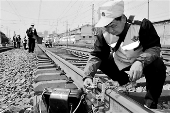 纯手工检测钢轨焊缝每个用时15分钟,借助同步扫查辅助架,时间缩短至3分钟。
