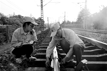 钢轨焊缝外观结构复杂,焊缝伤损检测主要靠人工手持超声波探头进行全断面检测,操作工艺繁琐(图①)。中国铁路郑州局集团公司洛阳工务段职工史胜利,对焊缝外观结构形状、探头检测角度进行测量分析和数据核算,设计制作出同步扫查辅助架(图②),使探头滑动位置和速度受控于扫查装置快速检测。与过去手持探头操作检测相比,实现了超声波发射和接收探头位置相对固定(图③),保证了伤损准确性和检出率。