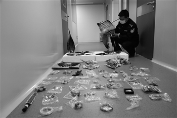 森林公安民警在清点收缴的野生动物制品。 吉林省森林公安局供图