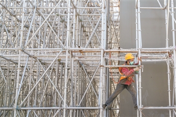 3月14日,北京的一处工地上,中铁建工集团的工人有序复工。来自重庆的段建斌是一名钢筋工,负责钢筋的搬运工作。复工以来,他和工友们每天在做好疫情防控的同时,抓紧复工复产。 本报记者 王伟伟 摄