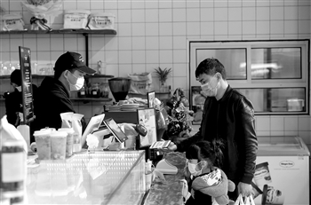 3月18日,顾客在渝北区新光里商业街一家甜品店内选购食品。