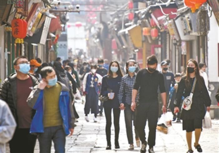 图为3月21日,游客在位于济南泉城路上的芙蓉街游玩。 新华社记者 朱峥 摄