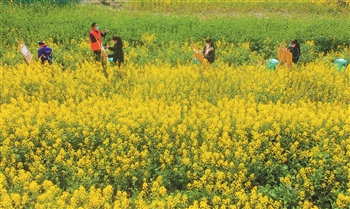 3月17日,江苏省如皋市磨头镇塘湾村的小朋友在油菜花田间画画。当日,如皋市文化馆的志愿者带着小朋友来到油菜花田,指导小朋友用画笔描绘美丽春色,感受春天的气息。