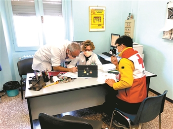③3月21日,在意大利帕维亚,援意中国抗疫医疗专家组成员与意大利帕维亚医院医生交流。新华社发