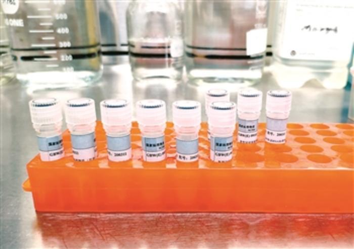 图为3月23日拍摄的新冠病毒核酸标准物质的样品瓶。上海研制的“新冠病毒体外转录RNA标准物质”近日被批准为国家级标准物质,这是新冠病毒首个由地方研制成功并获国家批准的体外转录RNA标准物质,可供国内外核酸试剂盒生产企业和研发机构使用,研制及审批时间从一年以上缩短至两个月。