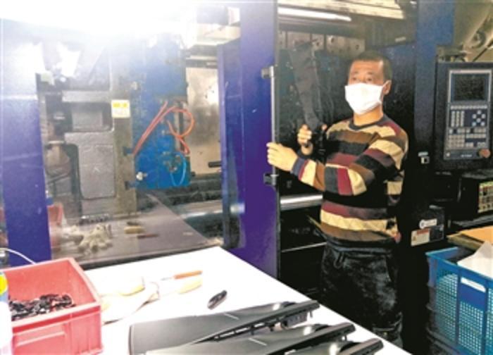 图为3月24日,刘清战在浙江省宁波市的一家工厂干活。