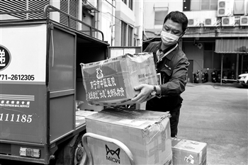 近日,广西邮政部门开通绿色通道,免费为援鄂医护人员提供返程行李寄递服务。工作人员对邮件逐一跟踪、实时监控运输,确保行李邮件第一时间收寄、最快时间运输、优先投递送达。新华社记者 曹祎铭 摄