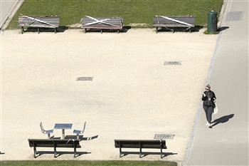 题图:3月25日,在比利时布鲁塞尔的一个街心公园内,长椅被拉上警戒线。新华社记者 郑焕松 摄