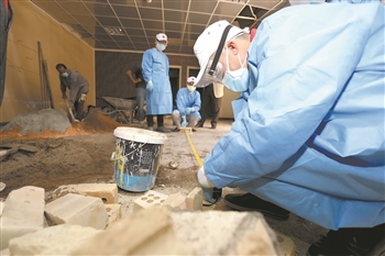 中国红十字总会援助伊拉克防疫专家组目前正协助巴格达城东的新冠肺炎定点隔离与收治医院改造用来摆放CT设备的房间。伊拉克缺少CT设备。据中方专家介绍,中国CT设备很快就能从国内发货。图为3月24日,中国专家在CT实验室改建现场工作。新华社发