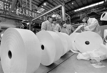 3月29日,经过 600多名干部员工35个昼夜的连续奋战,年产500吨的熔喷布生产线在中国石化仪征化纤厂区一次投产成功。该项目国产化率达95%以上,把常规一年的建设周期压缩成一个多月,跑出了中国制造的加速度,预计中国石化16条生产线5月份全部投产。刘玉福 摄