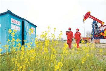 3月17日,中国石化河南油田采油一厂魏岗采油管理区外操一班员工在巡井。